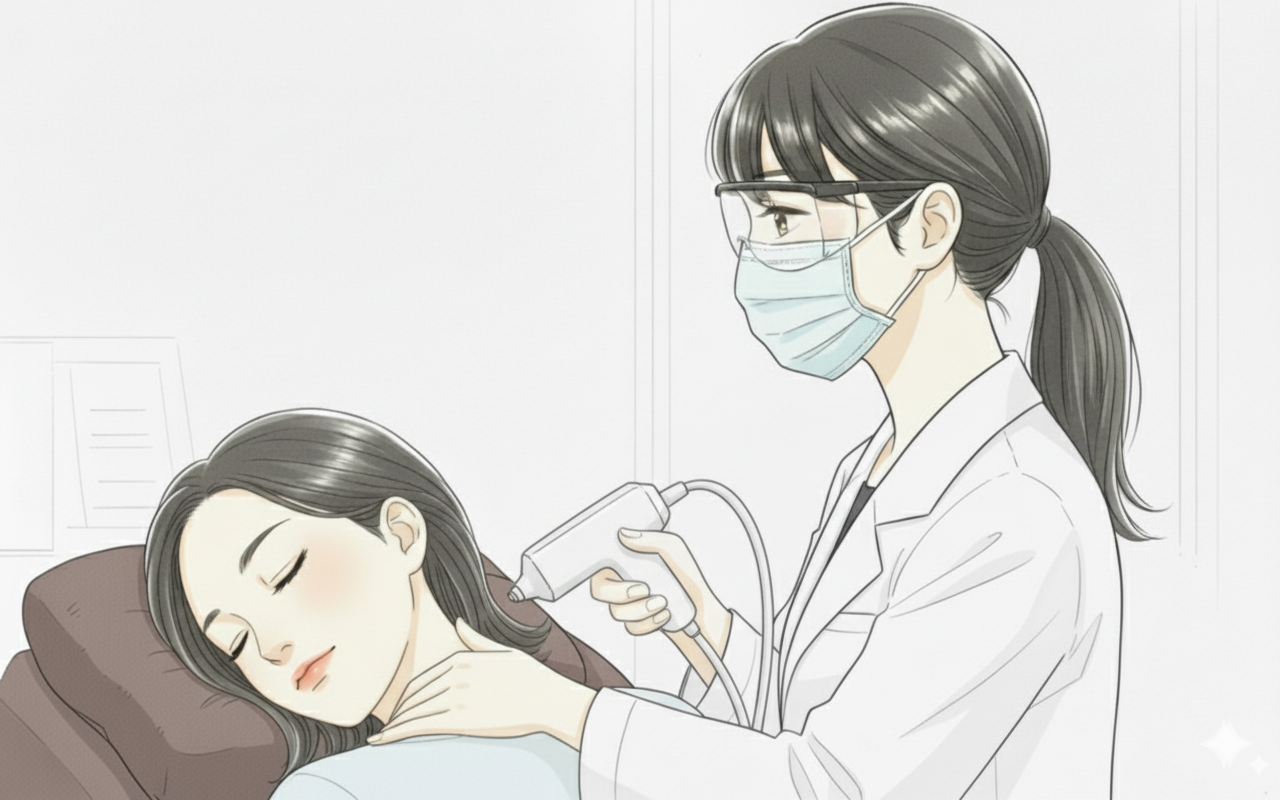 皮膚科専門医である院長が、粉瘤の状態や大きさなどを確認して、診断を行い治療の適応を判断します。炭酸ガスレーザーの場合は、ご希望の場合は診察当日の施術も可能です