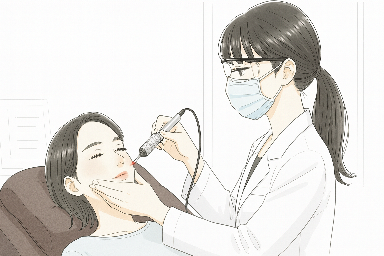 炭酸ガスレーザーの場合は、レーザーをほくろにピンポイントに照射します。