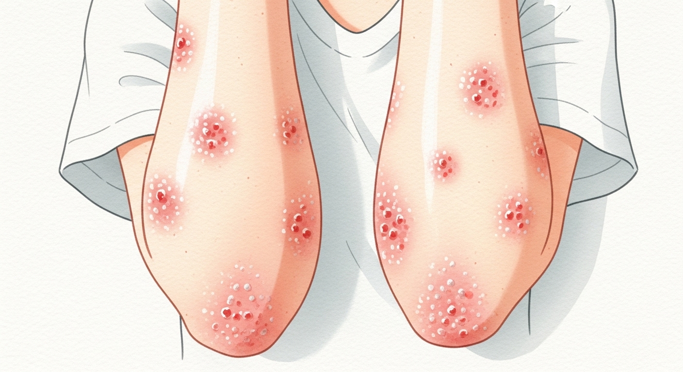 乾癬は全身どこにでもできますが、特に頭部や肘、膝、臀部、下腿伸側など刺激を受けやすい部分に発疹が起こります。皮膚症状以外に、発熱や倦怠感、関節の痛みなどの全身症状が起こる場合があります。