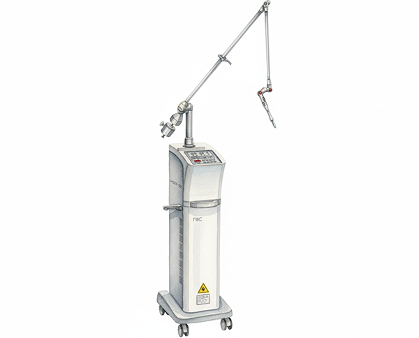 皮膚の深い真皮まで到達できるレーザーです。メラニン色素に反応して細胞を破壊するので、正常組織へのダメージを最小限にして患部にピンポイントに照射して治療を行います。照射した部分のシミが薄くなってきたら、再度照射が可能です。