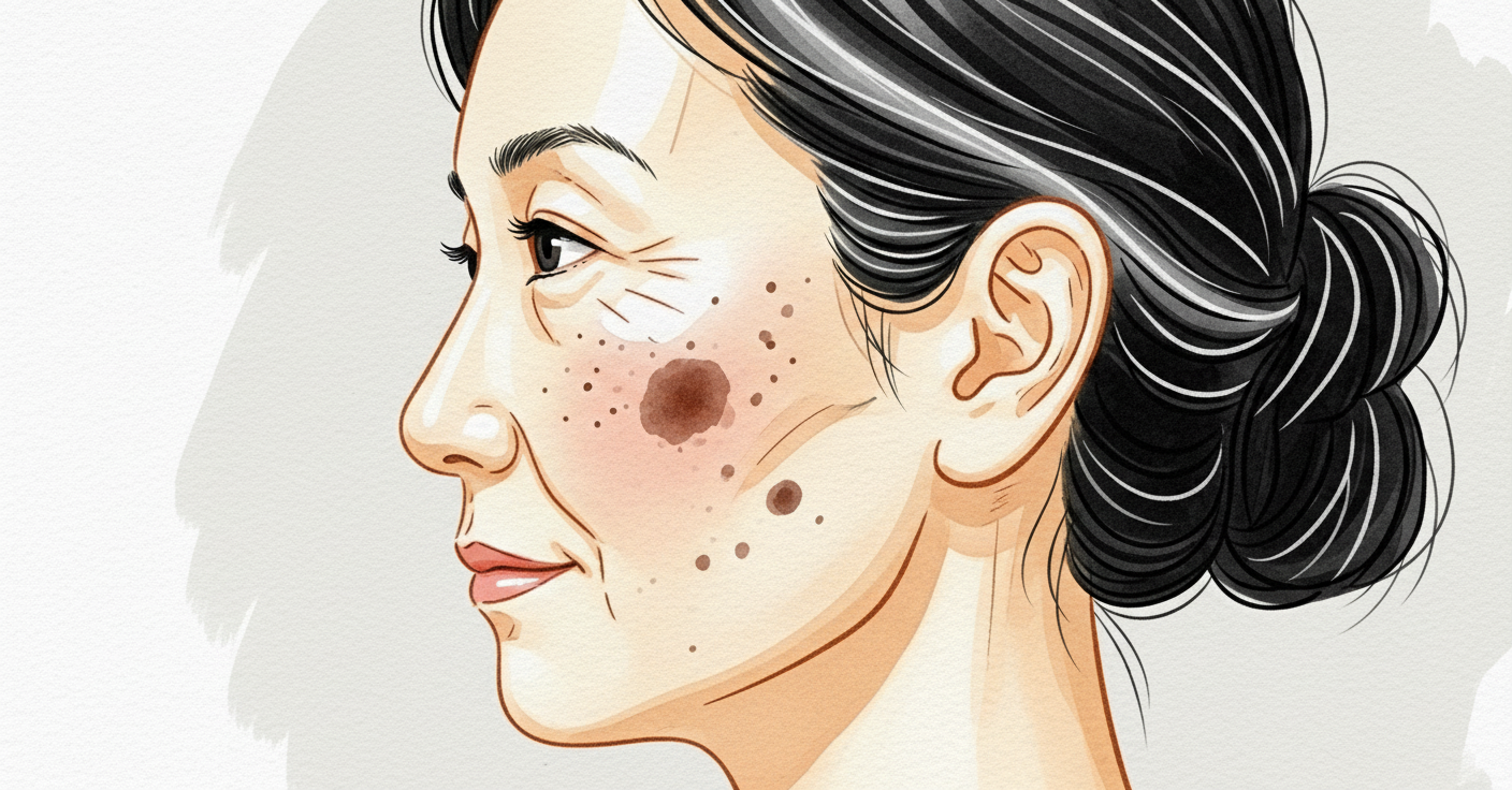 紫外線のダメージから肌を守るために生成されたメラニン色素が、加齢や新陳代謝の鈍化により肌表面に滞留して、シミ・そばかすが出来ます。