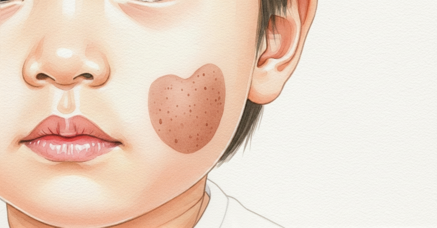 平らな茶色いあざ(色素斑)で、身体のあらゆる部位にできます。数ミリから数十センチのものまで大きさは様々です。ほとんどは、生まれた時からありますが、思春期以降に現れる場合もあります。悪性化することはなく、茶色い見た目からカフェオレ斑とも呼ばれています。扁平母斑は、レーザーによる効果が得られない場合があります。試験照射を行いながら、レーザーによる効果を判定していきます。